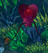 The Pest Jellyfish is an underwater inhabitant of Aquatilis Caverna that is related to the regular jellyfish. However, unlike their counterparts, these nasty critters can give your Creatures quite a shock! They seem to be a vegetarian, but if agitated enough, they morph into a much larger stage with a heart-shaped bell. If placed onland, their tentacles are retracted, they become unconscious, and if the jelly is large, it will shrink back down. Placing it back in water will revive them.