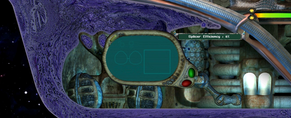 The genetic splicer can be found in both Creatures 2 and Creatures 3. On both versions you load two different creatures (Norn, Ettin or Grendel) into the machine and press a button or switch. The two creatures' dDNA is then cut apart and mixed together to create a single new creature. The original two creatures are killed in the process. There is, however, a glitch in Creatures 2 which allows you to save one of the victims of your genetic experiments. If you watch the cages carefully after starting the splicing process, you will have a short time after the purple flashes appear to press the button on one of the cages. Timing is critical, but if you press the button quickly enough after the flashes start, the flashes in that cage will freeze and the creature in the cage will be saved while still becoming part of the resulting spliced creature.