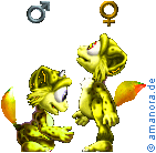 These Sunny Norns were created by Nimue. They are available for Creatures 2 only and occupy Geat slot H. They use the Golden Desert Norn genome.