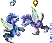 The Uriel Norns were created by Nimue. They are available for Creatures 2 only and occupy Grendel slot U. They use the Golden Desert Norn genome and represent the element air. To begin with, Uriel Norns are the delicate colours of the dawn sky. As adults, they gain wings in the colours of the rising sun, although they are unable to fly.